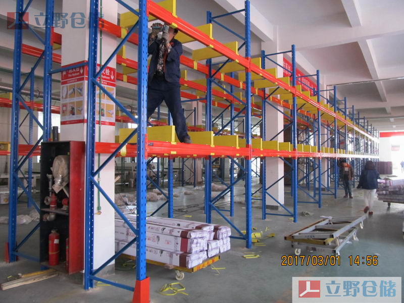 重型貨架,又稱橫梁式貨架,或稱貨位式貨架,屬于托盤貨架類,在國内的各種倉儲貨架系統中最爲常見一種貨架形式。以立柱片+橫梁形式的全組裝結構,結構簡明有效。可根據存儲單元集裝設備的特性加裝隔檔、工字跨梁、井字跨梁、鋼層闆(木層闆)、網層闆、倉儲籠導軌、豎向跨梁等附件。滿足不同單元集裝設備形式的貨物存儲。此類貨架在高位倉庫和超高位倉庫中應用最多(自動化立體倉庫中貨架大多用此類貨架)。